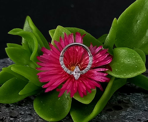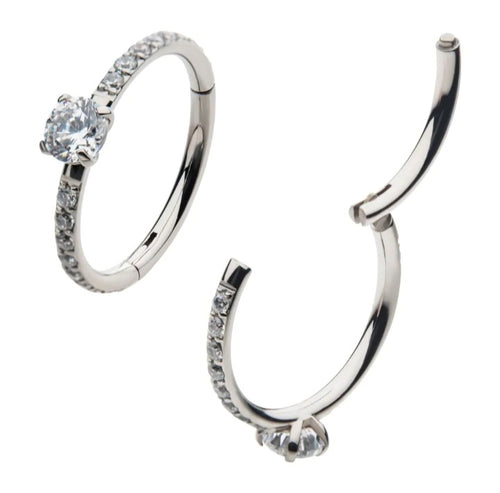 Argolla clicker con brillo prong set central y laterales clear