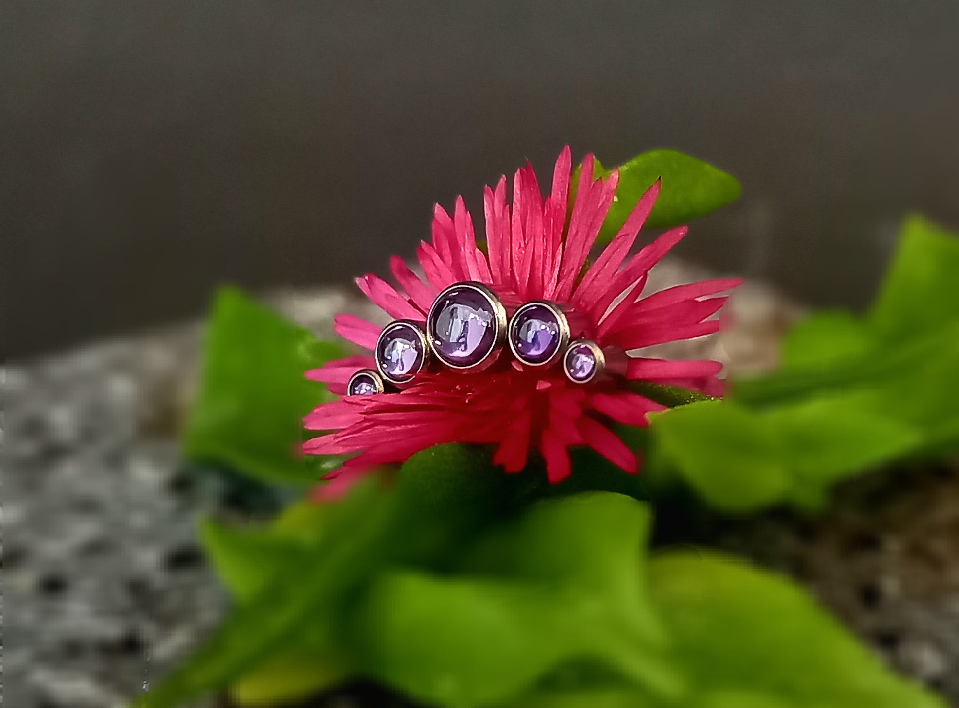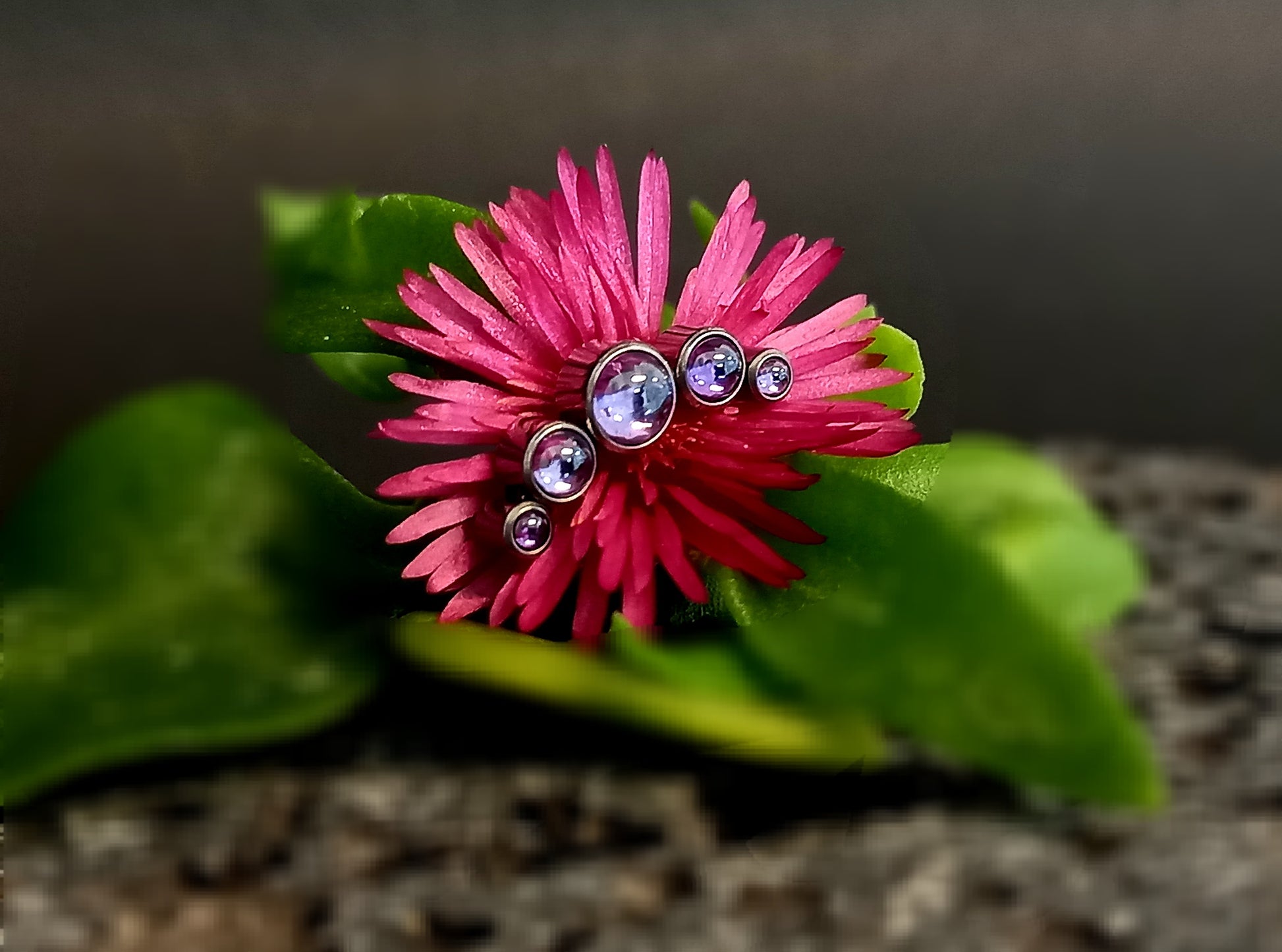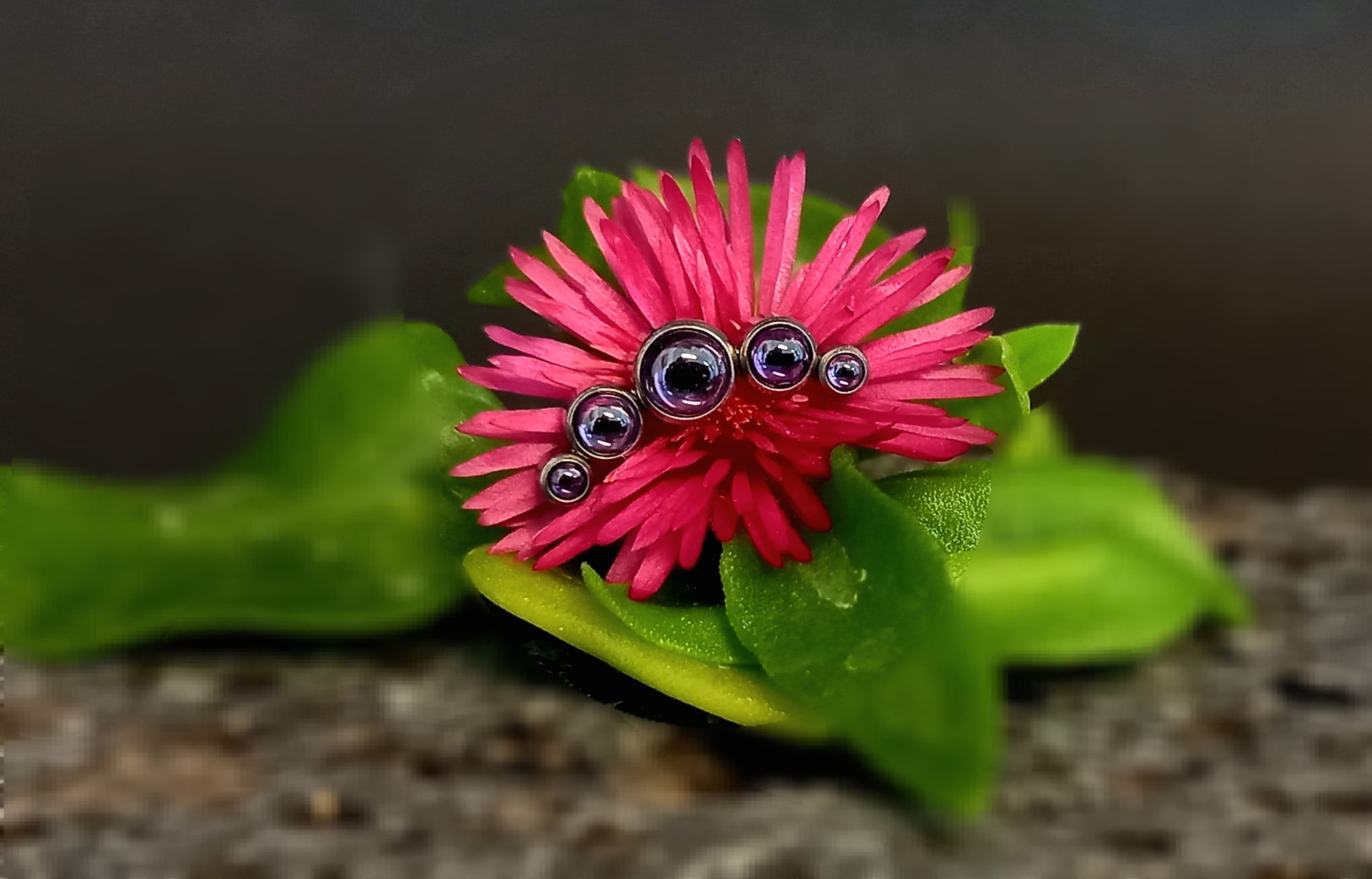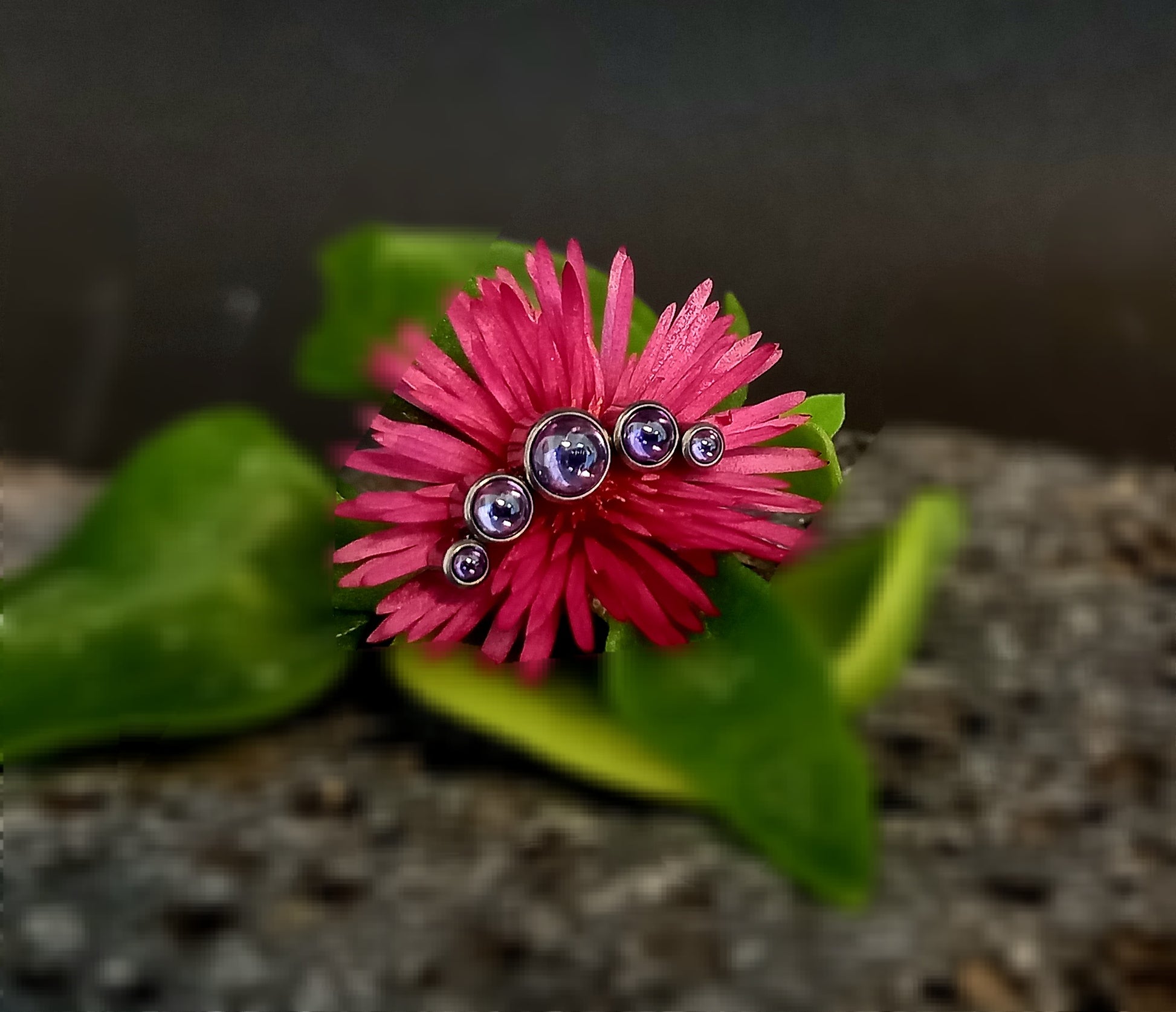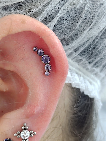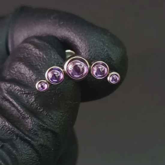 Titanio grado implante. Media Luna 5 cristales amatista 14G