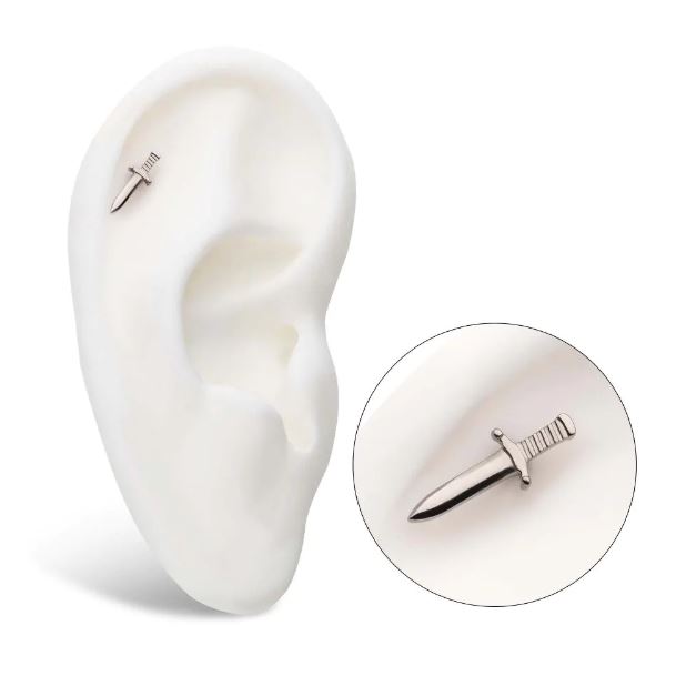 Esta joya está fabricada en titanio grado implante ASTM F-136, el material más recomendado para perforaciones iniciales y pieles sensibles. Su diseño de daga lisa aporta elegancia, estética y una sensación de lujo en cualquier estilo.