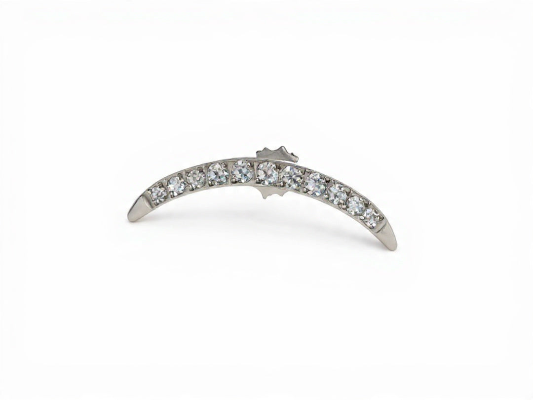 Esta joya está fabricada en titanio grado implante ASTM F-136, el material más recomendado para perforaciones iniciales y pieles sensibles. Su diseño media luna de 9 cristales aporta elegancia, brillo y una sensación de lujo en cualquier estilo.