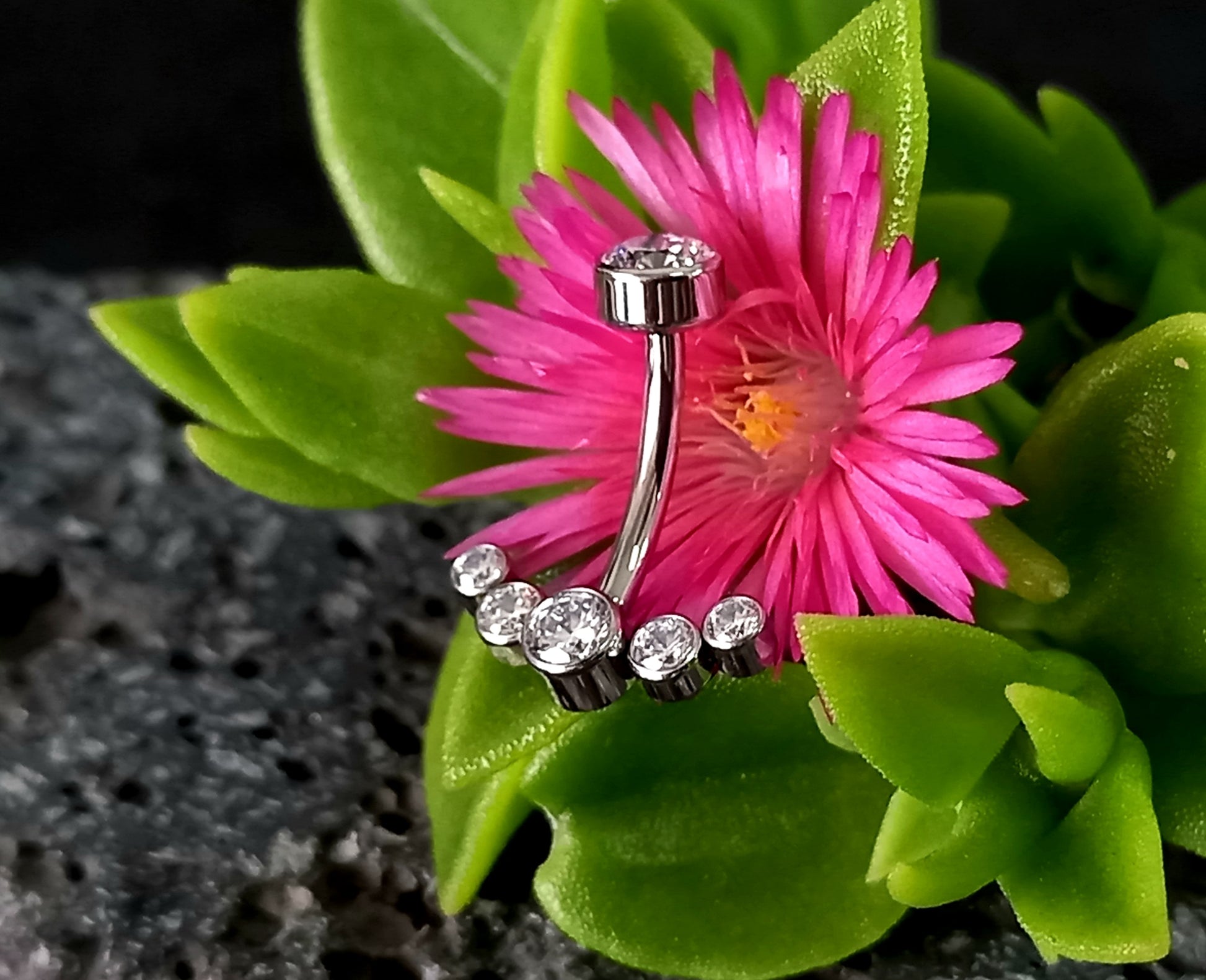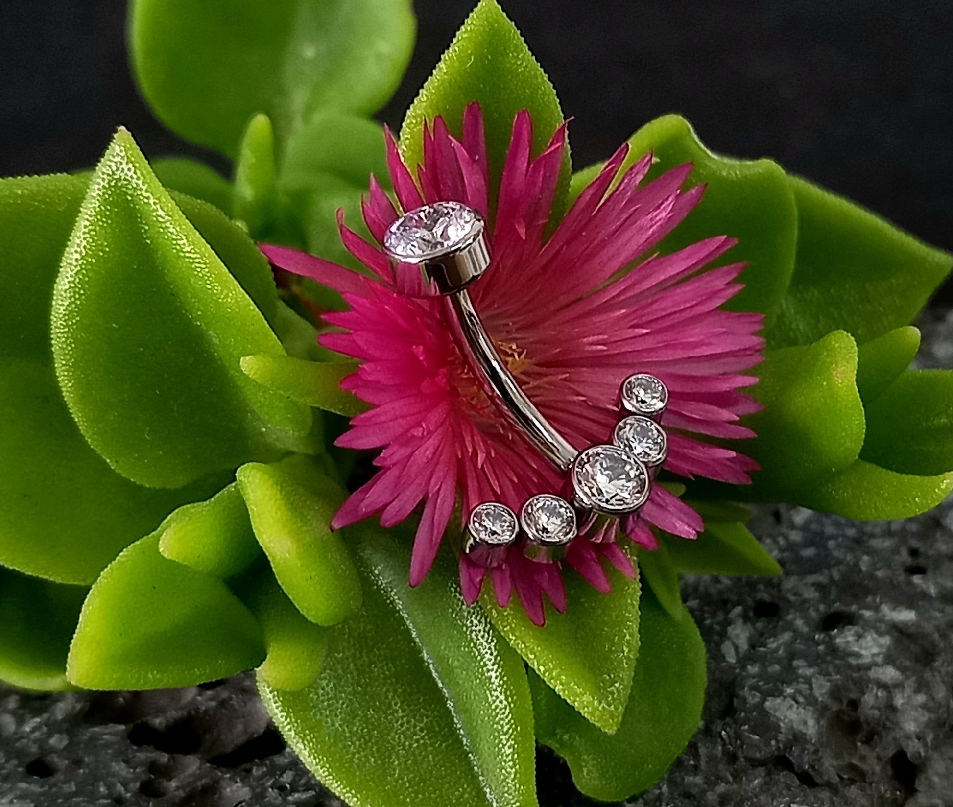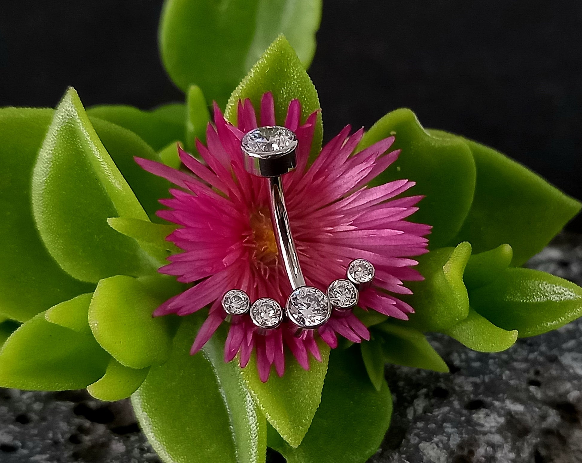 Joya en titanio grado implante Ti6Al4V ELI ASTM F136, ideal para postura inicial en perforaciones de Ombligo.