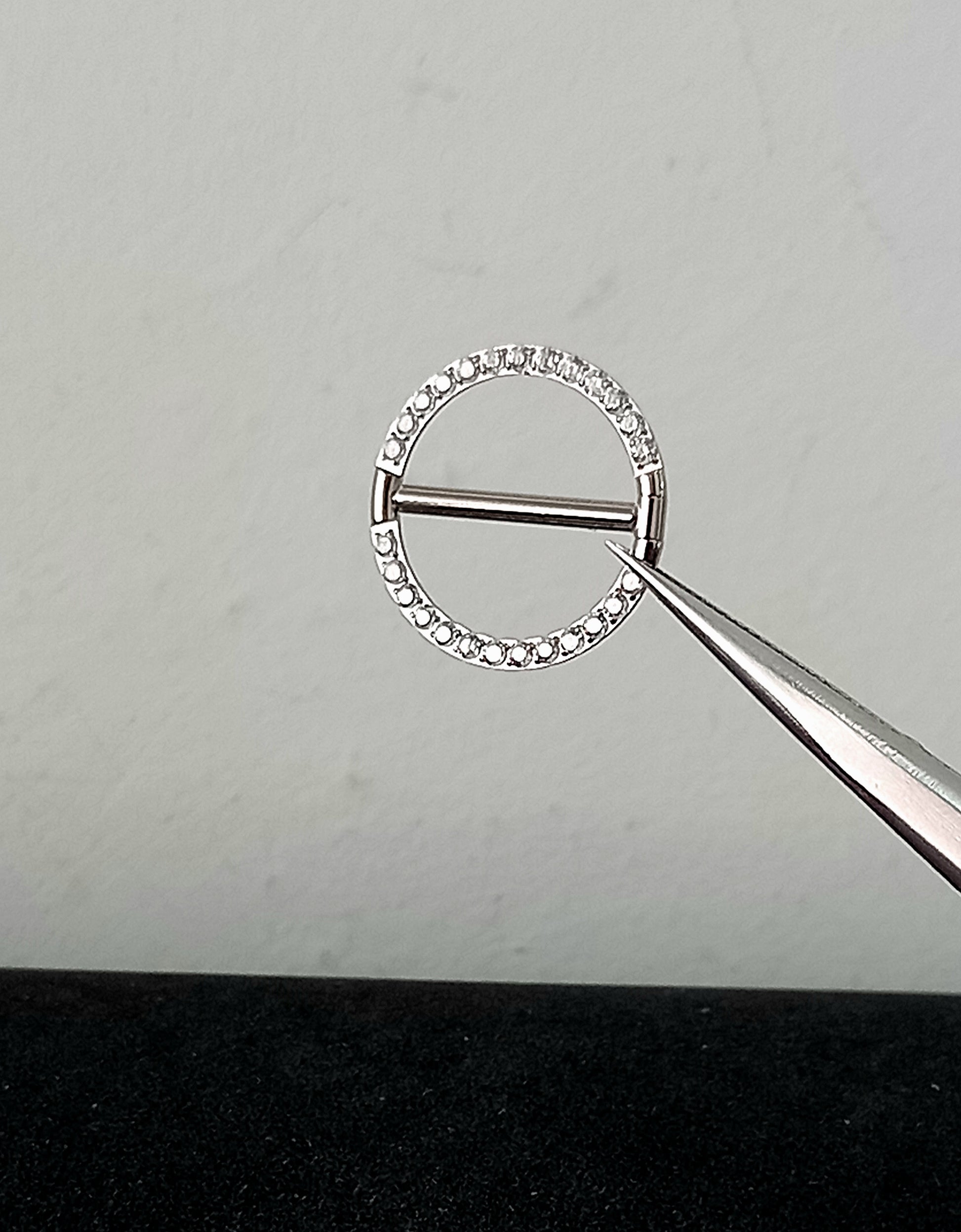 Joya en titanio grado implante Ti6Al4V ELI ASTM F136, ideal para postura inicial en perforaciones de Nipple (pezón)