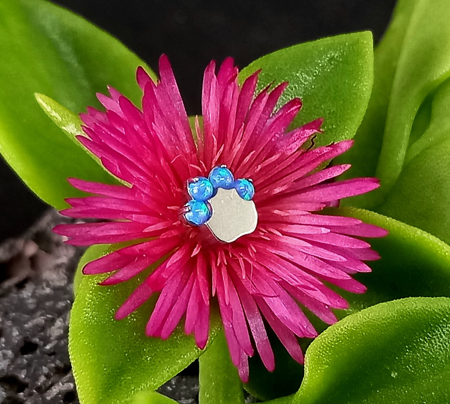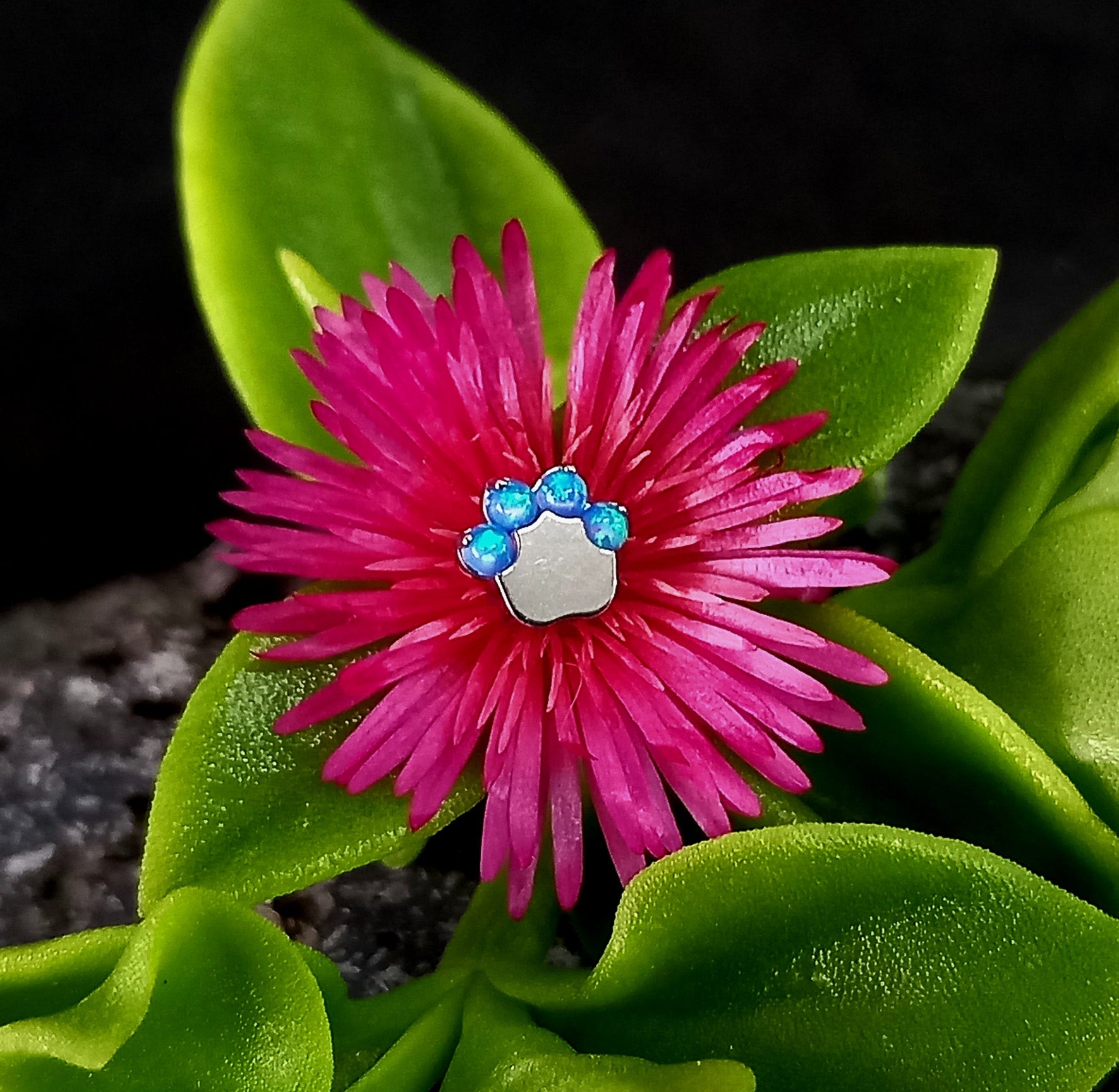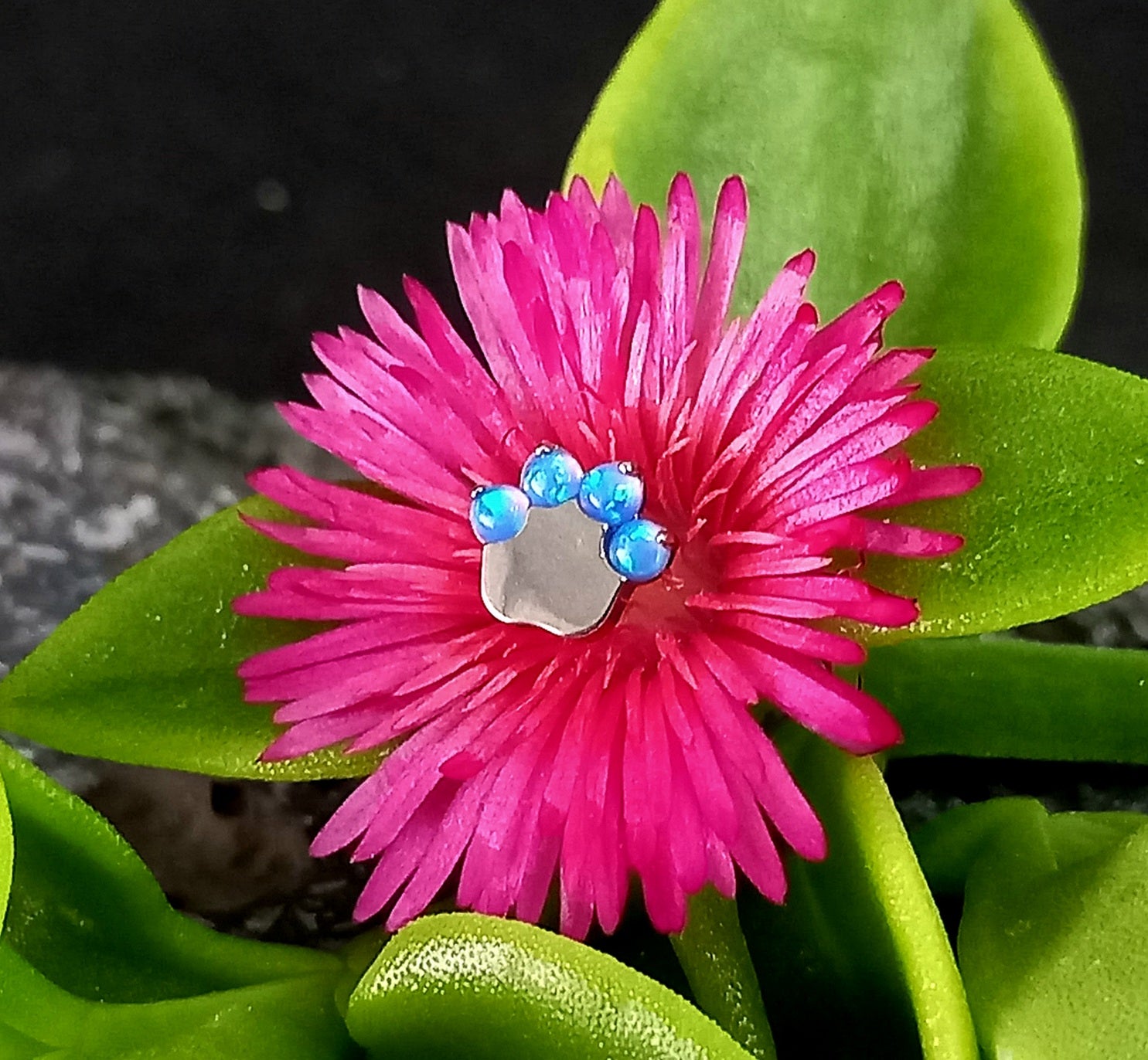 Titanio grado implante. Patita de perro opalo azul